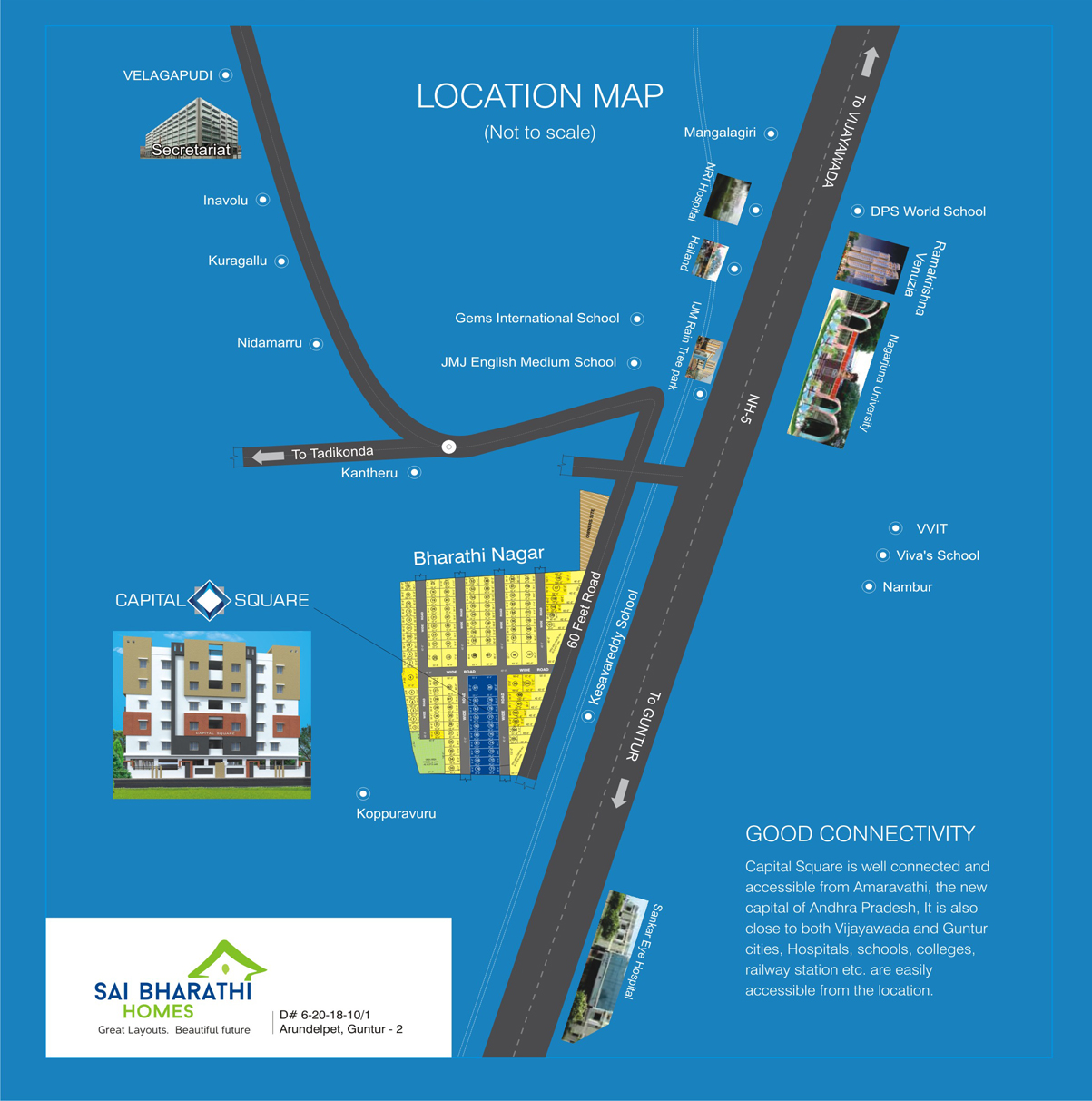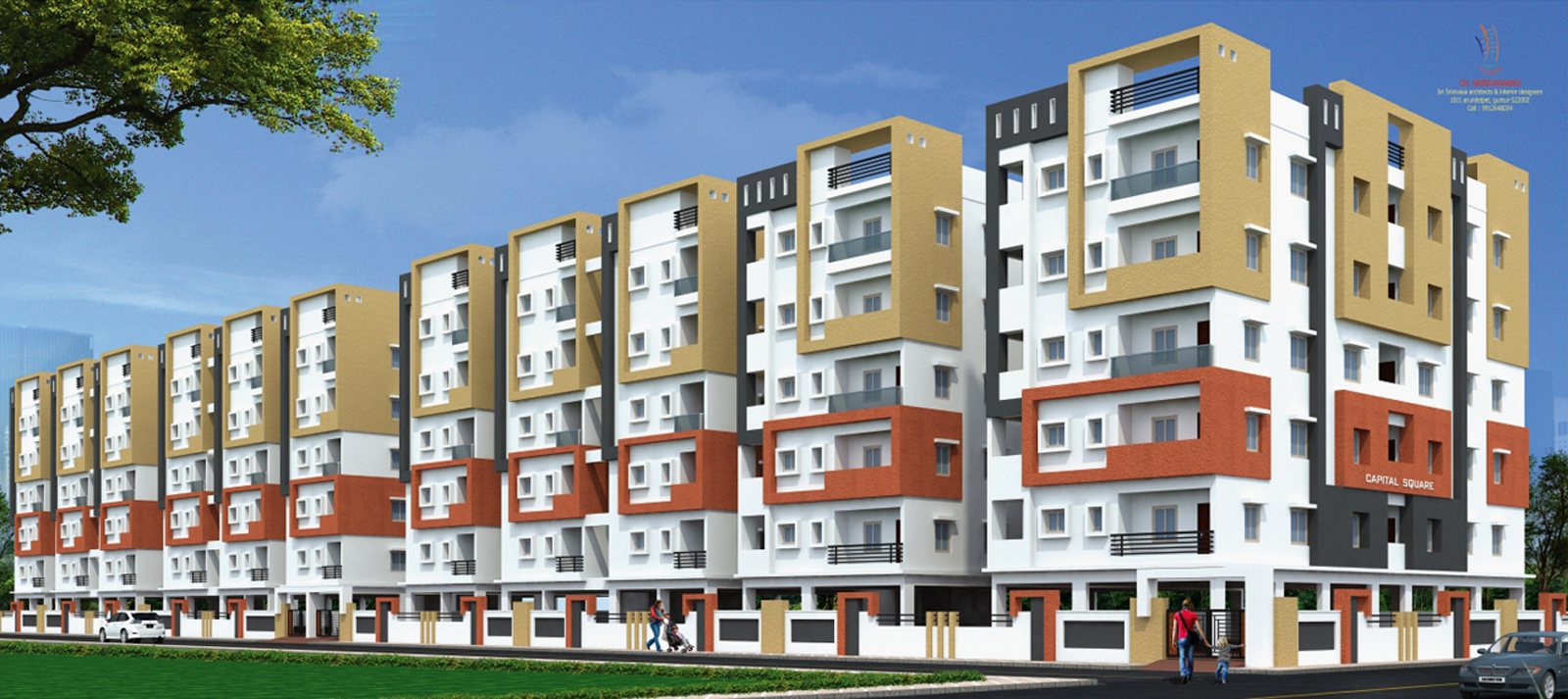 Capital Square is a proud project from sai Bharathi Homes which consists of premium, affordable apartments near the new Capital region of Andhra Pradesh. The project boasts of standard and spacious 2&3 BHK flats. a total of 110 individual apartments in a safe and secure environment. The project is a part of the Bharathi Nagar, APCRDA approved layout project of the company, a gated community with fully secure compound wall for the total layout of 13 acres and a whole range of amenities